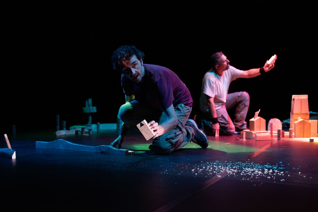 La fusta és l’element principal d’aquesta proposta on dos parells de mans mouen peces per l’espai i fan aparèixer paisatges, històries, jocs, preguntes, imatges, números, paraules… en un imaginatiu viatge on intèrprets i espectadors, compartiran preguntes sobre com funciona el món que els envolta, acompanyant el constant procés de descoberta que és fer-nos grans.