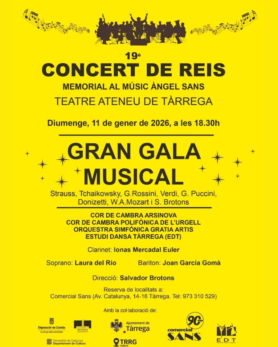 El 19è Concert de Reis – Memorial al músic Àngel Sans tindrà lloc diumenge 11 de gener de 2026, a les 18.30 hores, al Teatre Ateneu de Tàrrega.