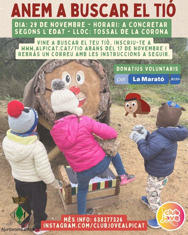 Vine a buscar el tió, inscriu-te a www.alpicat.cat/tio abans del 17 de novembre i rebràs un correu amb les instruccions a seguir.