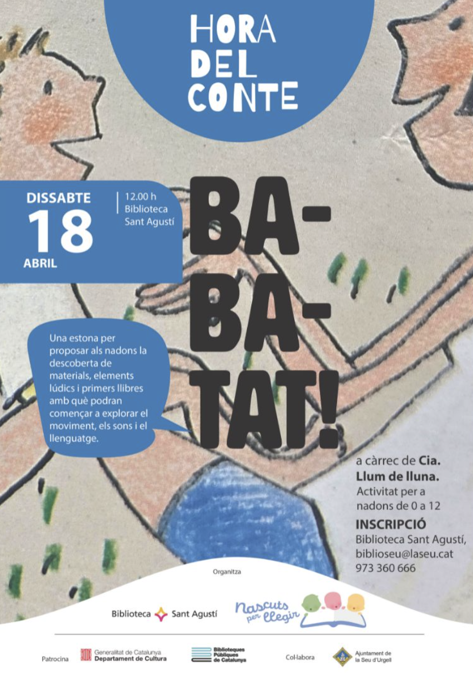 Activitat per a nadons de 0 a 12 mesos, a càrrec de la Cia. Llum de lluna.Proposta per explorar materials, sons i llenguatge.Inscripció prèvia obligatòria.