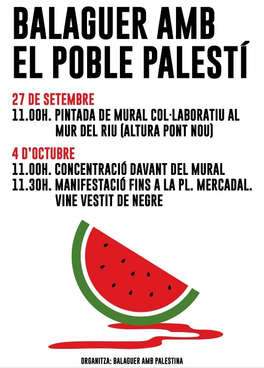 A les 11:30 hores, la concentració es transformarà en una manifestació fins a la plaça Mercadal, on els participants estan convidats a vestir-se de negre com a signe de dol i protesta per la situació actual de Palestina.