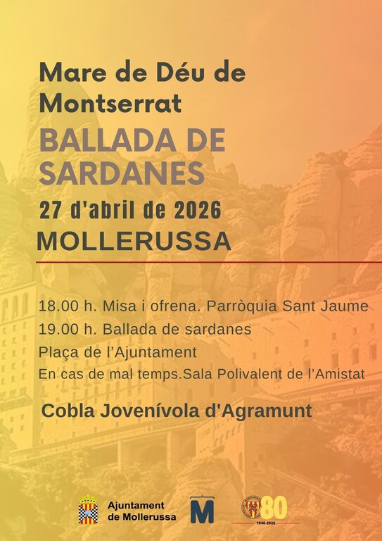 L’Agrupació Sardanista de Mollerussa organitza una nova edició de la tradicional ballada de sardanes per celebrar la Diada de la Mare de Déu de Montserrat.
