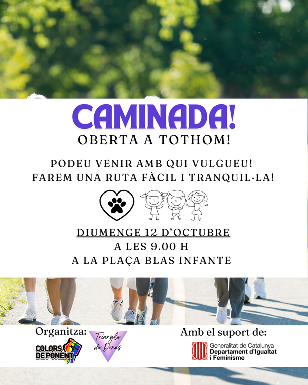 Activitats familiars · Caminada Caminada oberta a tothom (Organitza: Triangle de Dones) Podeu venir amb qui es vulgueu, amb una ruta fàcil i tranquil·la