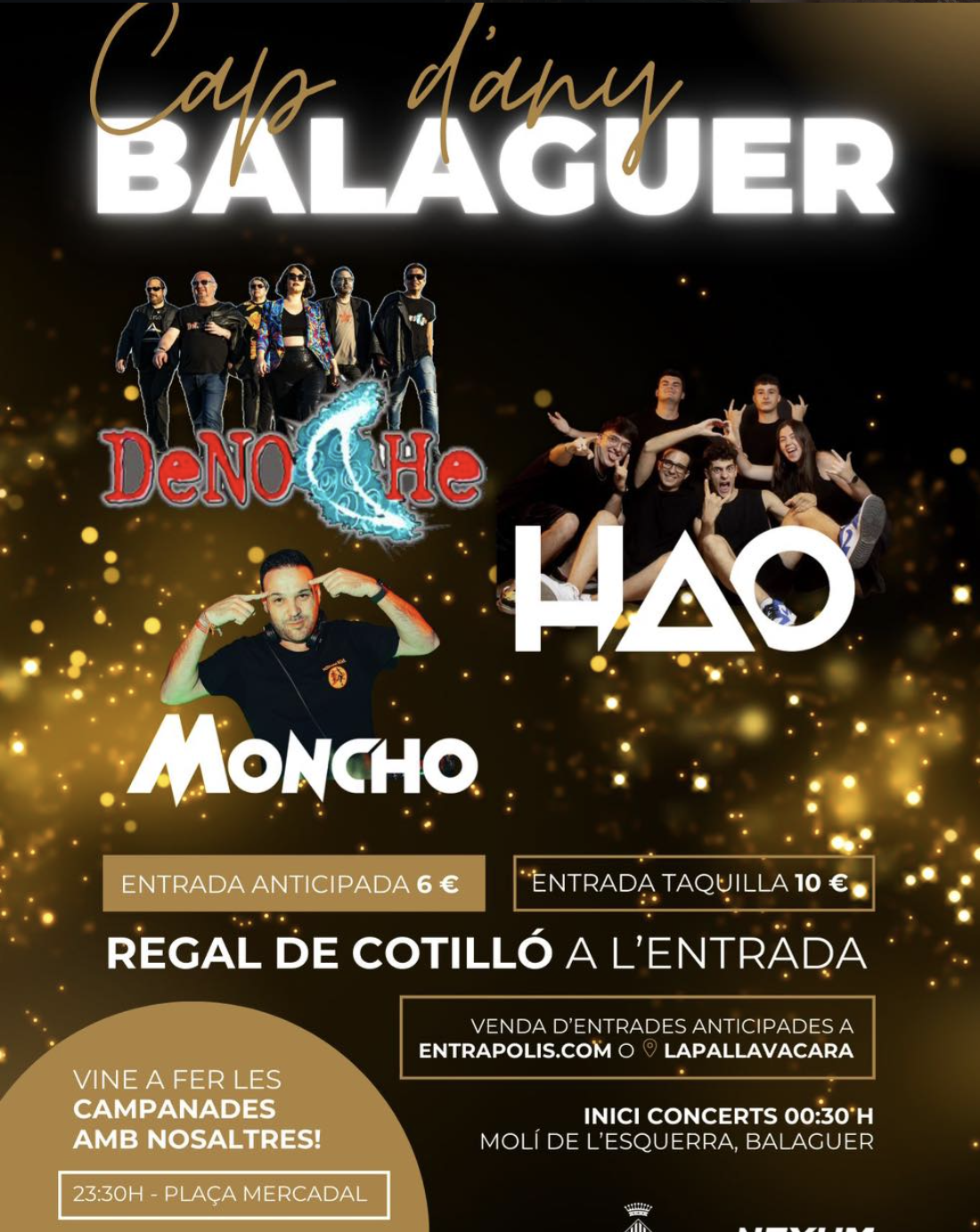 A les 23.30 h, a la plaça Mercadal, seguirem les campanades amb pantalla gegant.