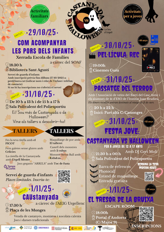 Divendres 31 d’octubre – Tarda familiar Castanyada vs Halloween amb tallers i jocs: