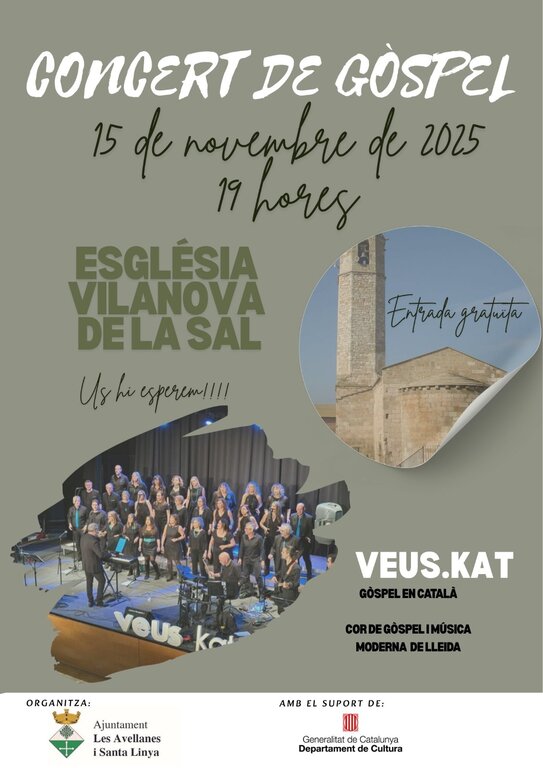 L’església de Vilanova de la Sal acollirà el dissabte 15 de novembre, a les 19.00, un concert de gòspel en català a càrrec del cor Veus.Kat, una de les formacions vocals més destacades de les terres de Ponent. L’entrada serà gratuïta.