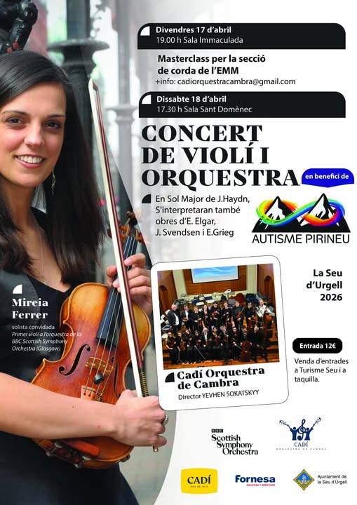 Concerts · Música Concert de l'Orquestra Cadí i la violinista Mireia Ferrer A benefici de l'entitat Autea