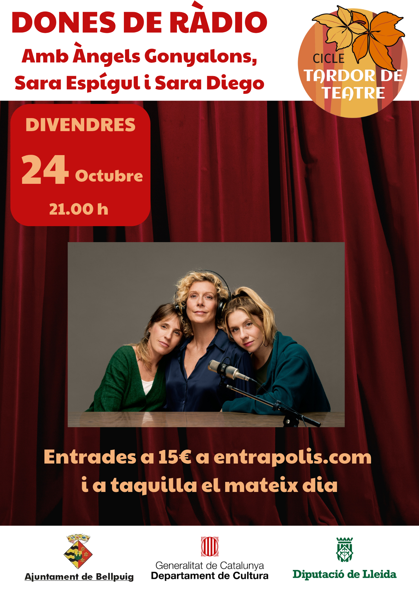 Activitats familiars · Cicles · Espectacle · Teatre 'Dones de Ràdio' amb Àngels Gonyalosn, Sara Espígul i Sara Diego. 24 d'octubre. Bellpuig.