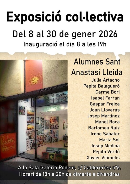 Els alumnes Sant Anastasi presenten a la sala Galeria Ponent, del 8 al 30 de gener, una exposició col·lectiva de pintures.