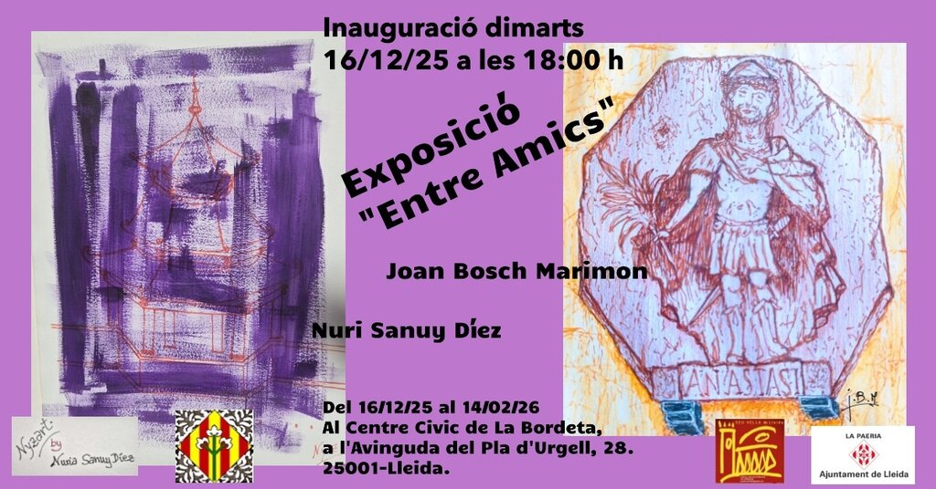 L'exposició "ENTRE AMICS", amb obres de dos artistes d'estils tant diferents com són el Joan i la Nuria, penjades en una mateixa sala, crea un diàleg vibrant, inspirador i molt enriquidor, tant per l'espai com per qui visita l'exposició i que no deixa ningú indiferent, essent aquest un tàndem perfecte.