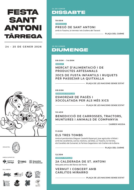 19.00 h, plaça del Carme: Pregó de Sant Antoni amb Lo Tossino, la Verreta i els Grallers del Tararot.