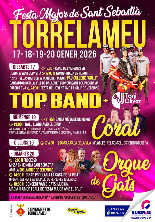 A les 24.00 h, festa del jovent amb el grup de versions Top Band i DJ Toni Oliver.