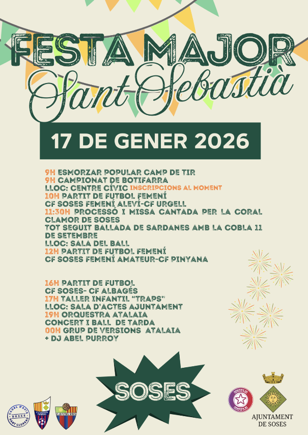11.30 h – Processó i missa cantada per la Coral Clamor de Soses.