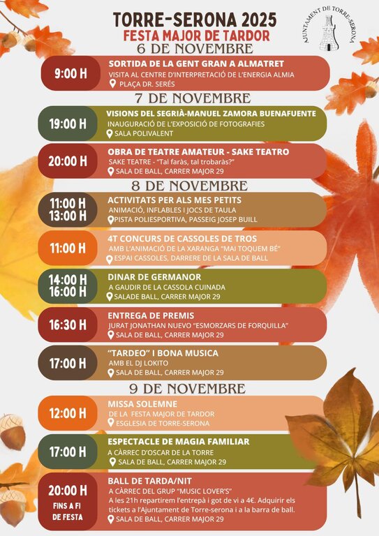 12:00 h: Missa solemne de la Festa Major de Tardor (Església de Torre-serona).