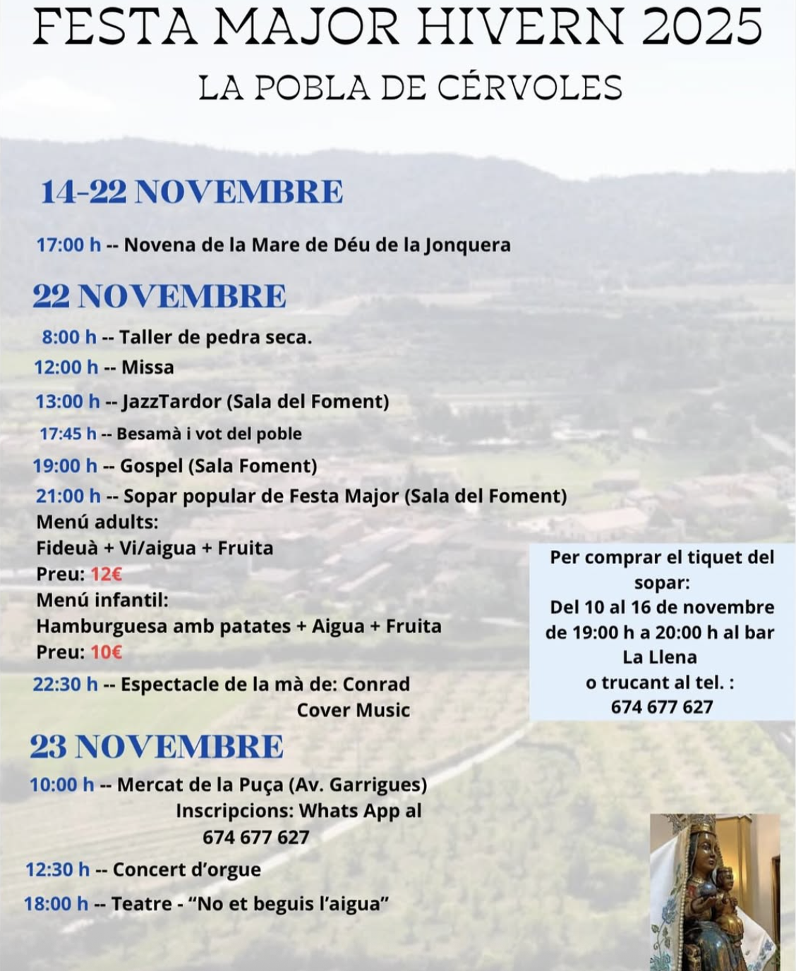 Del 10 al 16 de novembre, de 19.00 a 20.00 h al bar La Llena, o trucant al 674 677 627.