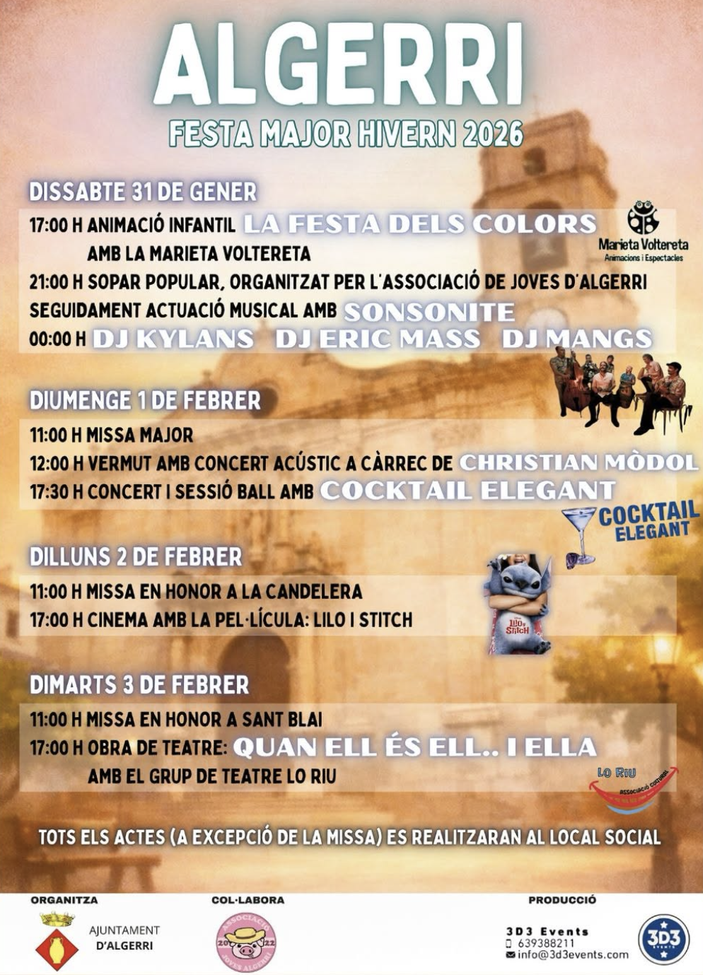 21.00 h: Sopar popular organitzat per l’Associació de Joves d’Algerri