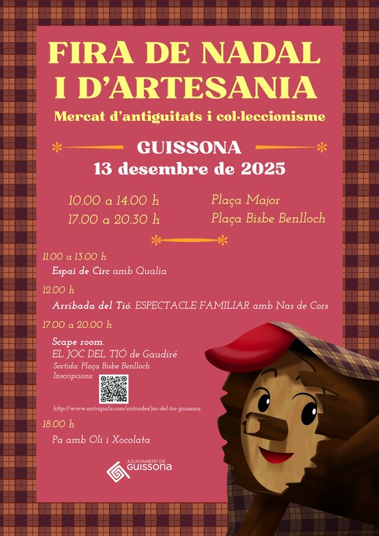 17.00–20.00 h: Scape room “El joc del Tió de Gaudiré”, amb sortida des de la Plaça Bisbe Benlloch. Cal inscripció prèvia.