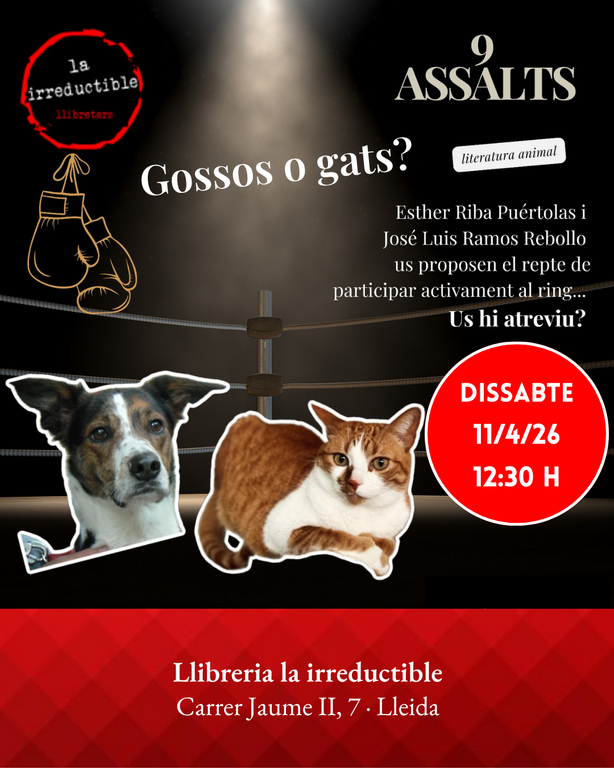 Presentacions i col·loquis Gossos o gats? Nova edició dels assalts de literatura animal Amb Esther Riba i José Luis Ramos