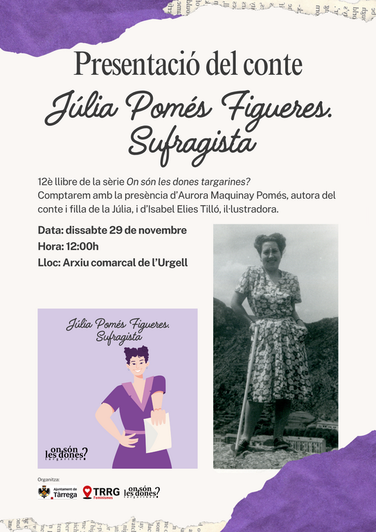 En aquesta ocasió, la protagonista és Júlia Pomés, una dona targarina, feminista, republicana i d’esquerres. Va haver de fugir de Tàrrega i sobreviure a la repressió franquista, sense renunciar mai als seus ideals.