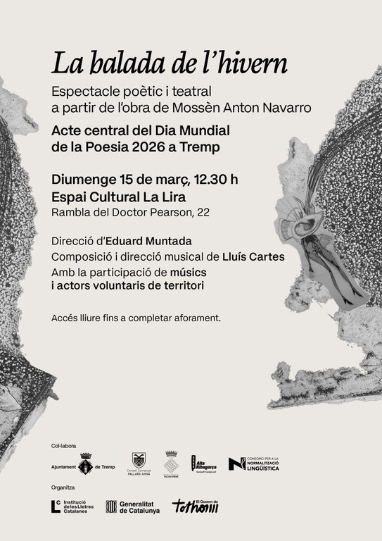 L’espectacle posa en escena els 23 poemes del llibre La Balada de l’Hivern, així com fragments de Pirinenques (1903) i Recitacions. Proses rimades (1914). El muntatge combina recitació, interpretació escènica i música en directe, amb una dramatúrgia a càrrec d’Eduard Muntada i composició musical de Lluís Cartes, dos creadors amb forts vincles amb la muntanya i el món de les arts escèniques.