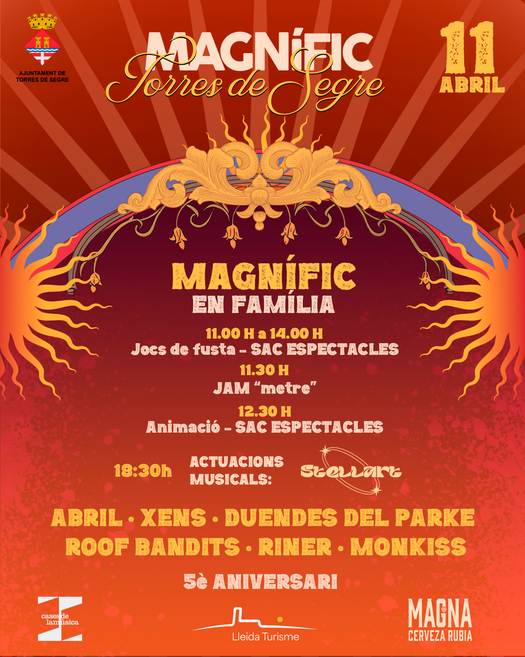 Hi haurà jocs de fusta i espectacles familiars amb SAC Espectacles, Jam “metre” i animació, i a les 18.30 h actuacions musicals amb Abril, Xens, Duendes del Parque, Roof Bandits, Riner i Monkiss.