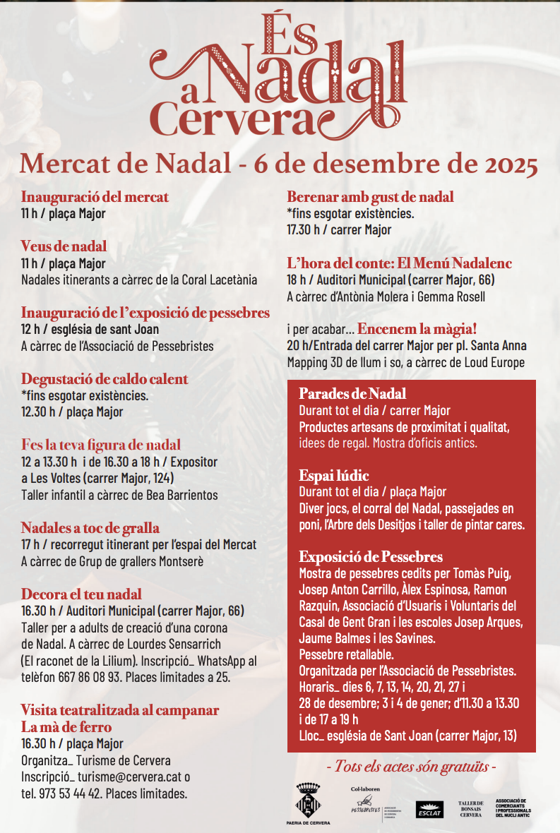 12.00 a 13.30 h i 16.30 a 18.00 h – Les Voltes (carrer Major, 124)