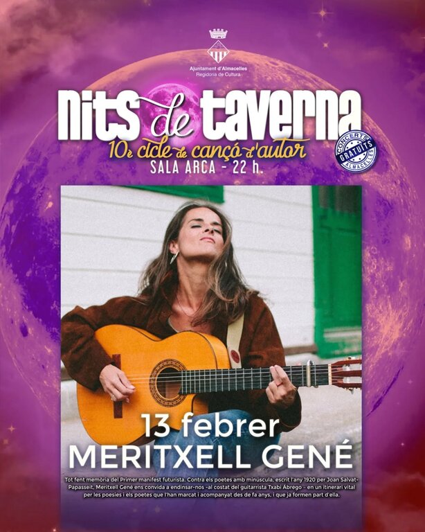 Meritxell Gené (Lleida, 1986) és una cantautora, música i poeta catalana, reconeguda per la seva sensibilitat literària i el seu treball profund sobre la paraula. La seva obra es mou entre la cançó d’autor, el folk i la poesia musicada, amb una veu íntima i una interpretació molt expressiva.