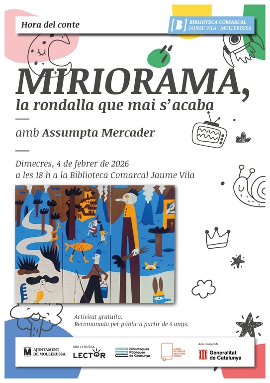 Un miriorama és un conjunt de targetes il·lustrades que es poden reordenar formant diferent paisatges i creant noves històries. Eren molt populars durant el segle XIX, agradaven molt als infants de l’època i hi jugaven moltíssim. La il·lustradora Blanca Hernàndez ha dibuixat uns miriorames gegants plens de personatges i éssers fantàstics propis de la rondallística catalana. Explicarem les rondalles, donarem a conèixer els personatges i, tot seguit i entre tots, ens inventarem noves històries!
