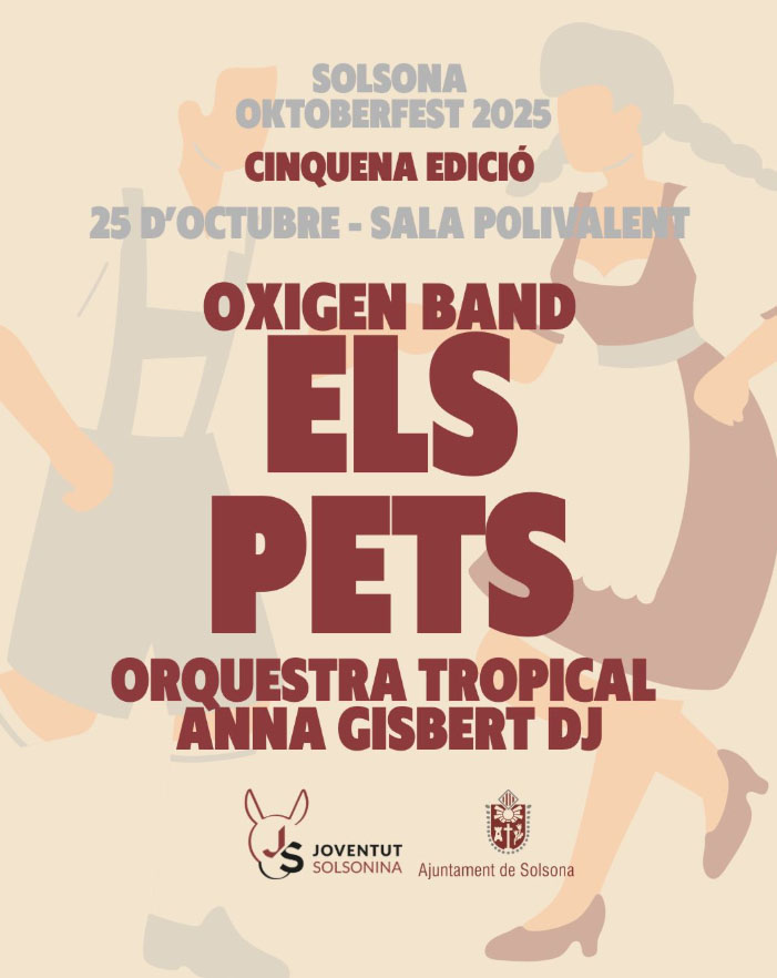 Més de quinze anys després de la seva última actuació a la capital del Solsonès, Els Pets porten la gira d'aniversari Cantant les quaranta a Solsonaper celebrar el cinquè Oktoberfest, organitzat per Joventut Solsonina. La mítica banda tarragonina hi repassarà temes dels seus quatre discs més representatius i que han marcat l'imaginari de diferents generacions: Calla i balla (1991), Bon dia (1997), Agost (2004) i Som (2018).