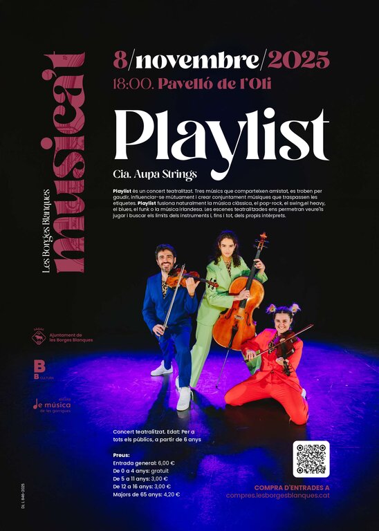 Playlist és un concert teatralitzat. Tres músics que comparteixen amistat, es troben per gaudir, influenciar-se mútuament i crear conjuntament músiques que traspassen les etiquetes.