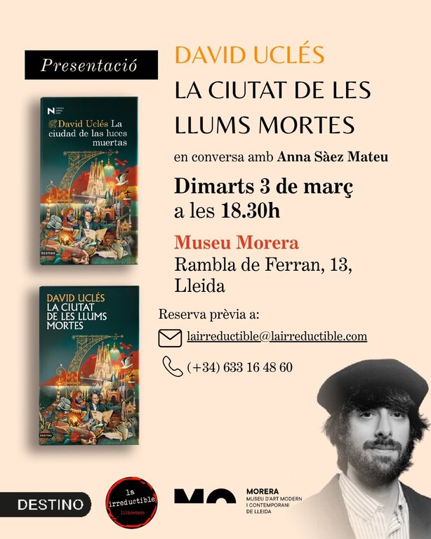 Presentacions i col·loquis Presentació de 'La ciutat de les llums mortes', de David Uclés L'autor estarà acompanyat per la periodista i directora de Segre Anna Sàez