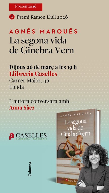 Presentacions i col·loquis Presentació del llibre 'La segona vida de Ginebra Vern' D'Agnès Marquès. L'autora estarà acompanyada per la periodista i directora del diari Segre Anna Sàez