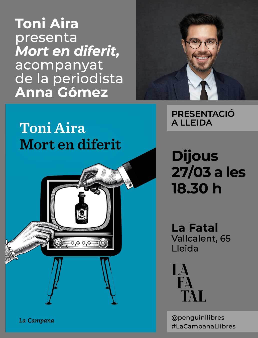 Presentacions Presentació del llibre 'Mort en diferit' de Toni Aira L'autor estarà acompanyat per la periodista Anna Gómez