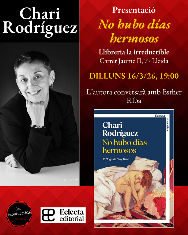 Presentacions i col·loquis Presentació del llibre 'No hubo días hermosos' Amb la participació de l’autora Chari Rodríguez i Esther Riba.