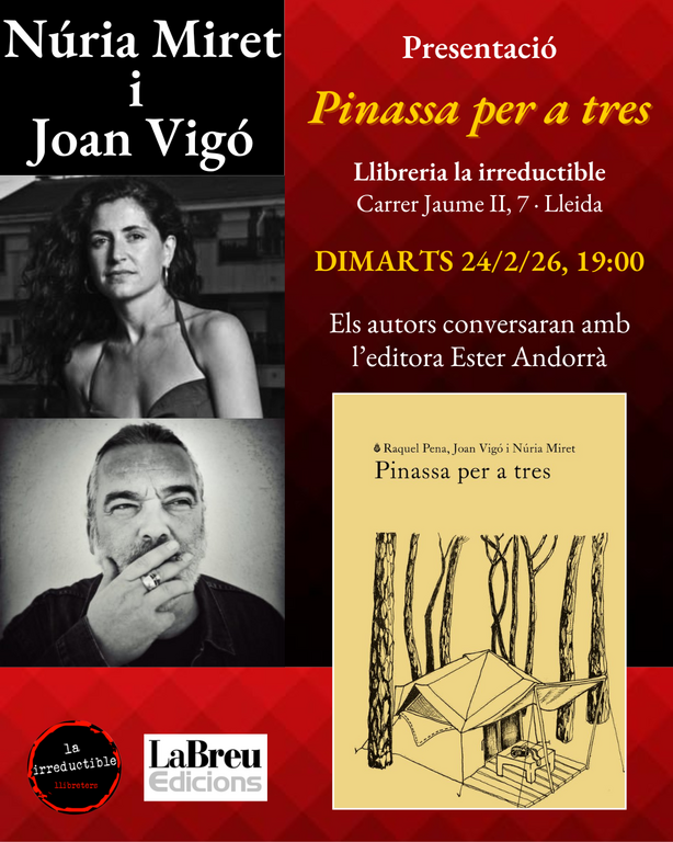 Presentacions Presentació del llibre 'Pinassa per a tres' Amb la participació dels autors, Núria Miret i Joan Vigó, i l’editora de LaBreu Ester Andorrà
