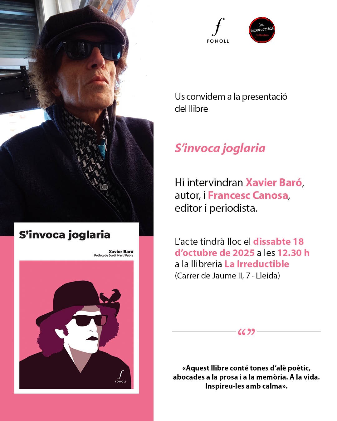Presentacions Presentació del llibre S'invoca joglaria de Xavier Baró Un llibre d’aventures d’un dels músics més lliures del panorama musical del nostre país