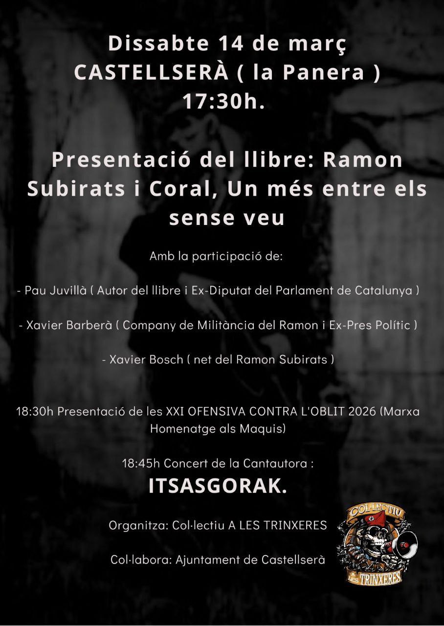 En paraules del seu autor, Pau Juvillà, Ramon Subirats i Coral. Un més entre els sense veu és un reconeixement al compromís i la lluita d un dels invisibles, Ramon Subirats i Coral. Perquè el fil roig de l esquerra independentista arreu dels Països Catalans, aquesta expressió que ens agrada tant d esmentar i que és necessària per construir futur aprofitant els maons del passat, no seria possible sense l existència de les fibres que el componen . Ramon Subirats va lligar una part important de la seva vida a la militància per l alliberament nacional dels Països Catalans des de l esquerra amb una influència molt important del món llibertari, ben segur a través del seu pare. Un compromís que, amb diferents intensitats, no va abandonar mai.