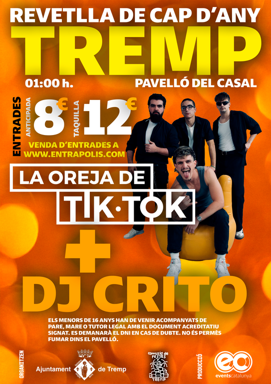 Tremp celebrarà la Revetlla de Cap d’Any al Pavelló del Casal a partir de la una de la matinada. L’escenari comptarà amb l’actuació de La Oreja de TikTok i, després, continuarà la festa amb DJ Crito.