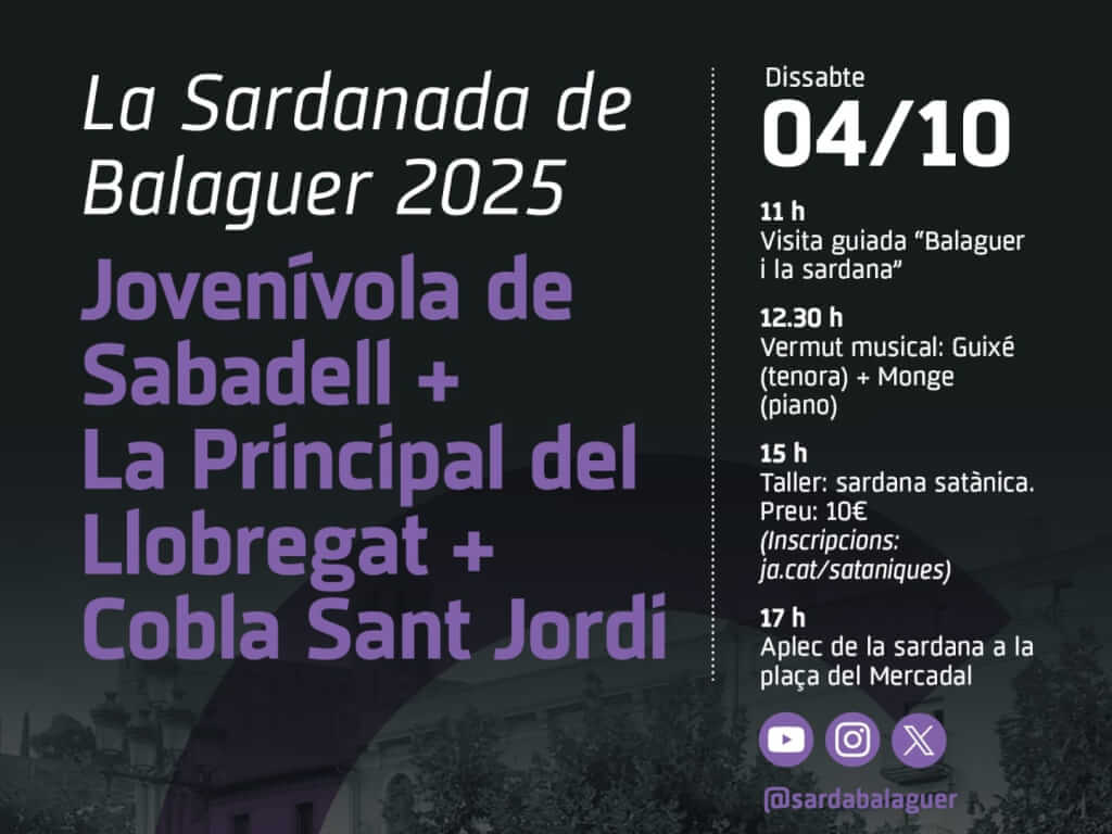 La Sardanada de Balaguer tindrà diversos actes que ha organitzat l’entitat Col·lectiu Sardanista de Balaguer per diversificar les propostes sardanistes i apropar-les a un públic més general. A l'octubre s'estrenarà la ruta 'Balaguer i la sardana'.
