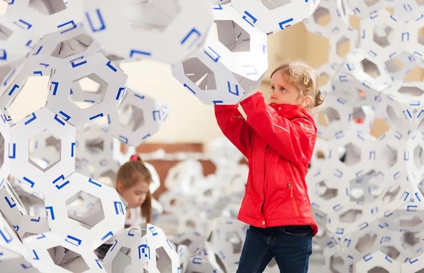 Aquests materials han estat dissenyats per Collective Paper Aesthetics, una iniciativa dedicada al disseny i el desenvolupament de recursos que fomenten la participació del públic i promouen l’aprenentatge STEAM mitjançant estructures arquitectòniques i mobiliari pop-up a escala, pensats per a tot tipus de públics en contextos culturals.