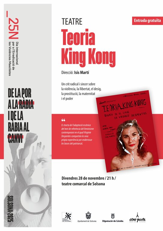 Estrenada al festival Temporada Alta de l’any passat, sota la direcció d'Isis Martín, Teoria King Kong qüestiona la moral patriarcal i aborda temes com la violació, la prostitució i el desig. Fidel a l’estil de Despentes, ho fa a partir d’una mirada lúcida i despullada sobre la construcció social de la feminitat i les violències estructurals que la travessen.