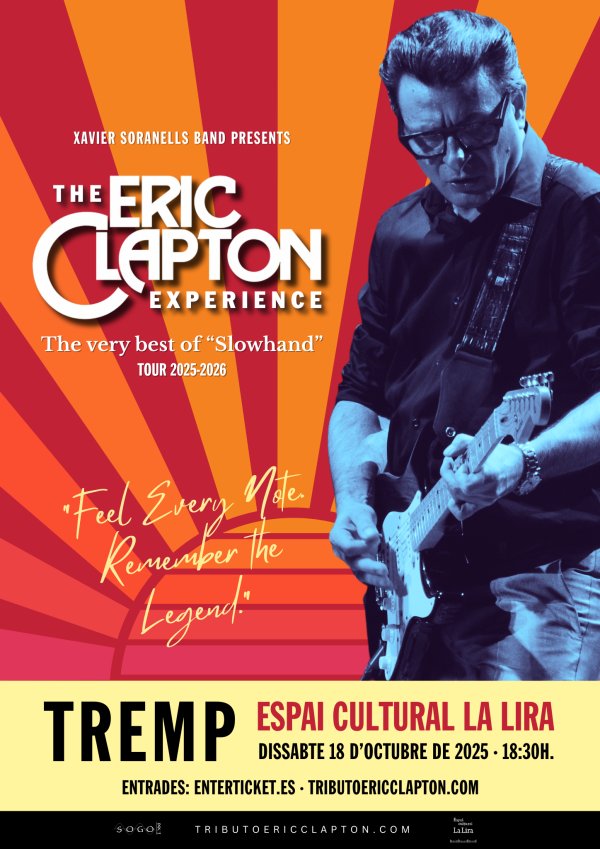 Viu una nit màgica amb The Eric Clapton Experience, la gira definitiva tribut a Slowhand. La banda, liderada per Xavier Soranells, recorre més de cinc dècades d'història musical, des dels mítics riffs de Cream, The Bluesbreakers i Derek & The Dominos, fins als èxits més emblemàtics de la carrera en solitari de Clapton, com Layla i Tears in Heaven.